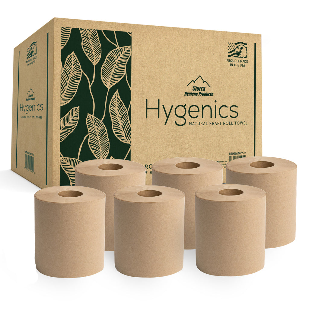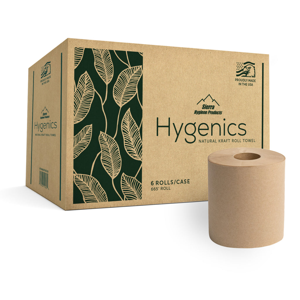 Give your staff and guests a reliable, eco-friendly drying option with the Sierra Hygienics 1-Ply Natural Kraft Paper Towel Roll. Designed for durability and efficiency, this 665-foot roll is perfect for high-traffic restrooms, kitchens, and handwashing stations. Its extended length reduces refill frequency, saving time and keeping dispensers stocked for longer. The non-perforated 1-ply design lets users tear off only what they need, helping to cut down on waste and maximize cost savings.